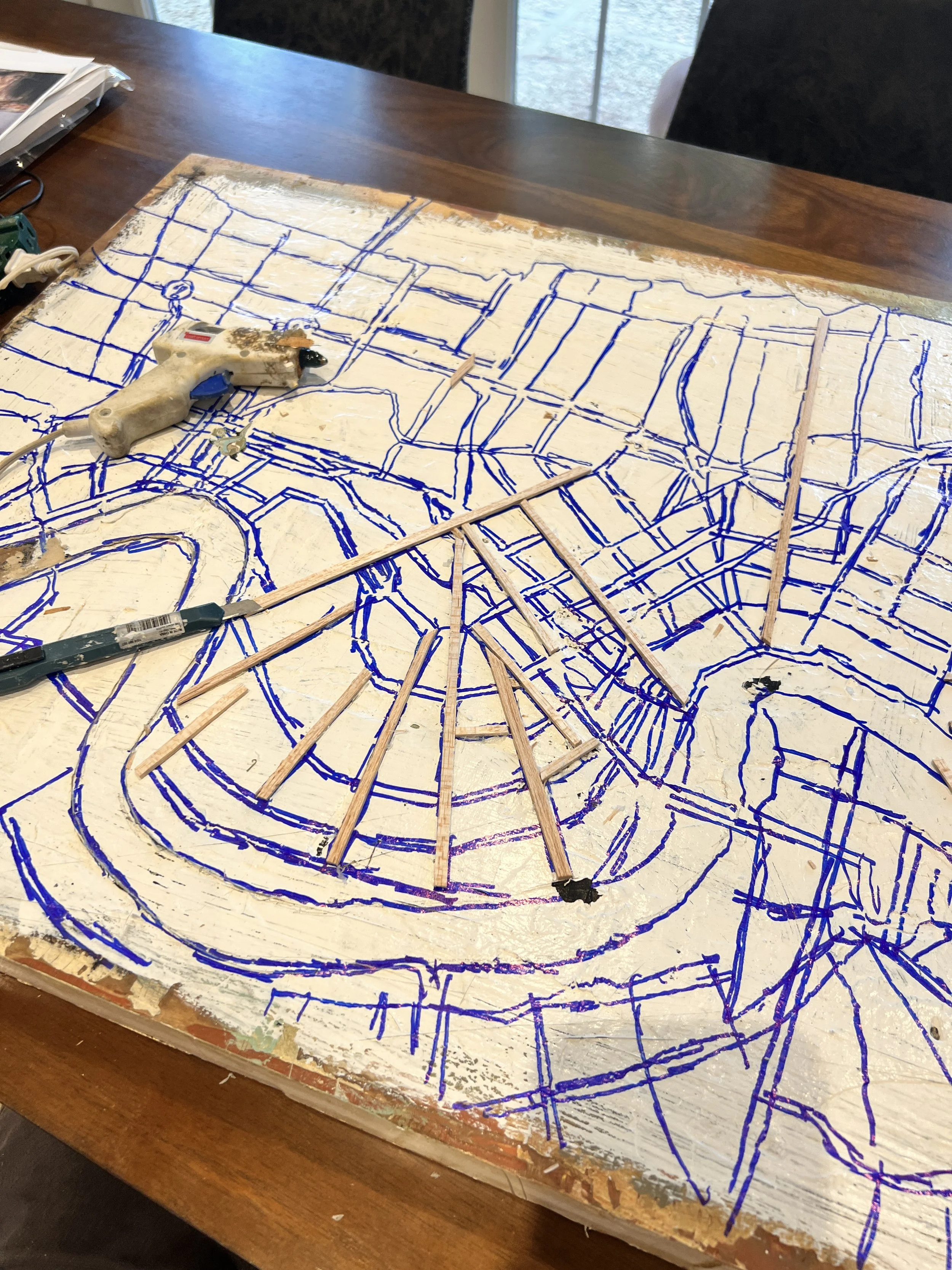 Laying the original design and intricate inlaid features of Marc’s three dimensional New Orleans City Map used 8 different reference maps and cartographical surveys to complete.
