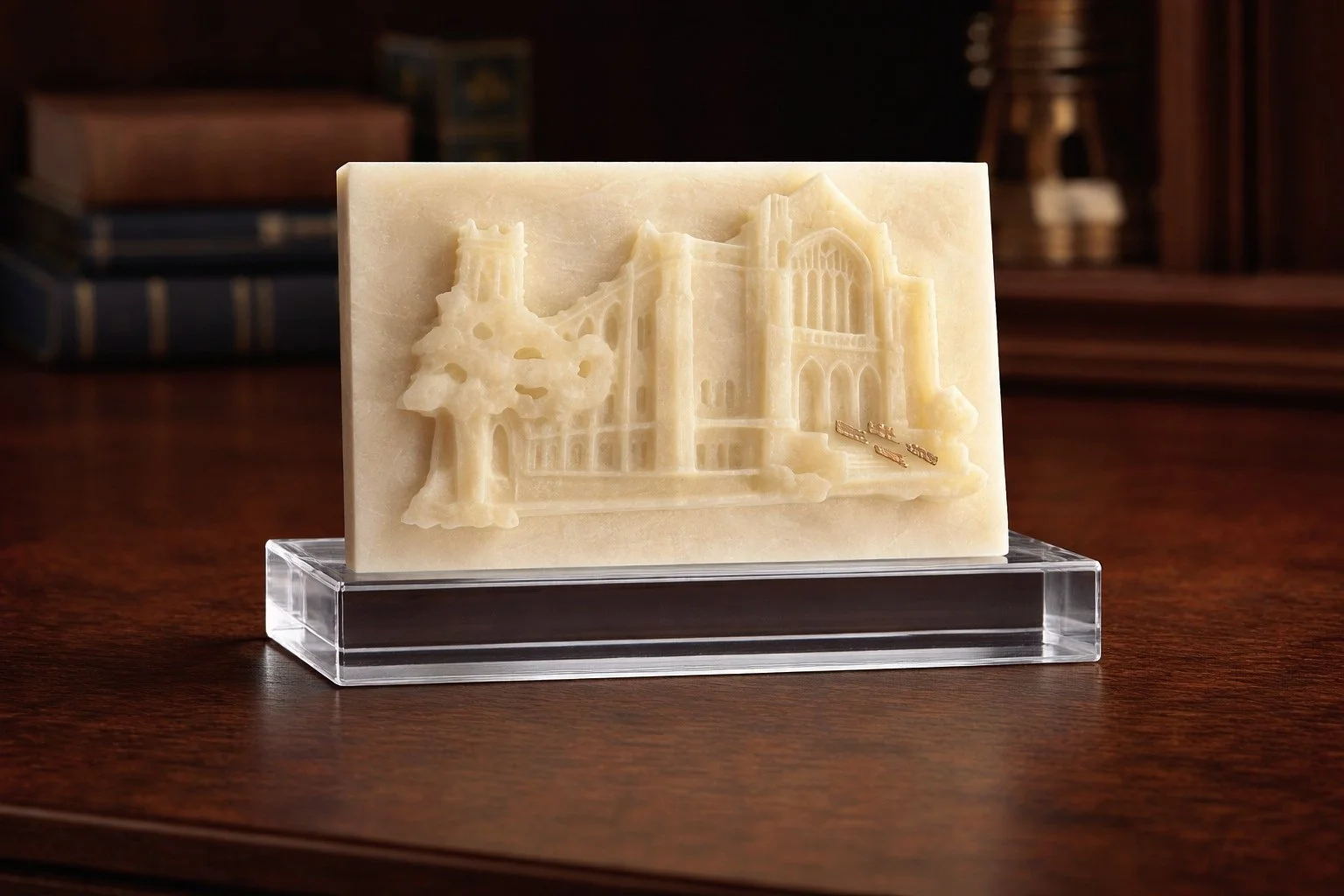In a digital-first world, tangible objects stand out. A handcrafted, miniaturized architectural icon does what emails and screens cannot—it becomes part of someone’s daily environment. On a desk or shelf, it sparks conversation, reinforces affiliation, and quietly extends your institution’s presence. Handed to a graduate, left quietly after a meeting, tucked inside of a gift basket- it’ll create long lasting effects.