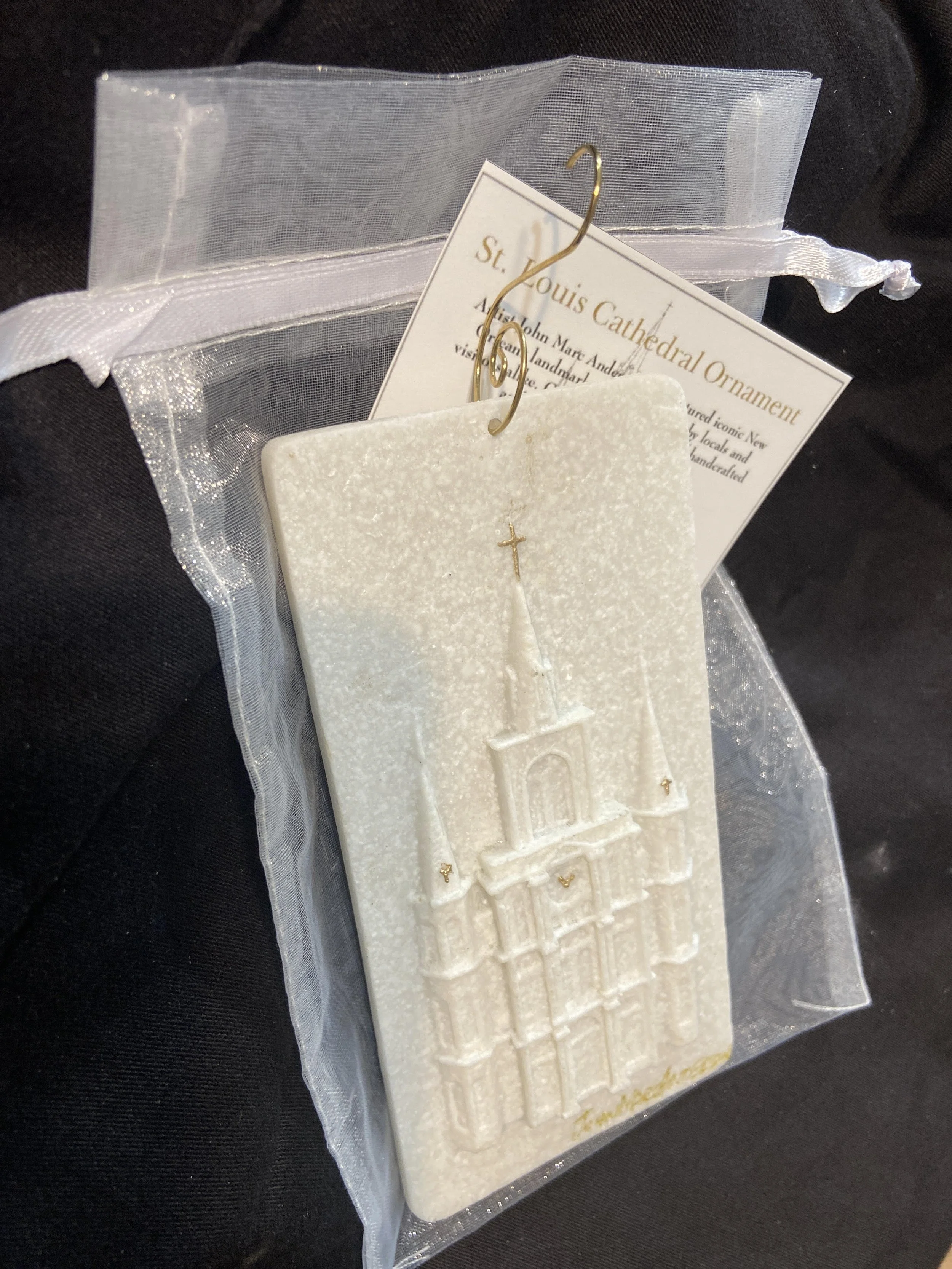 Cast quartz memento of The St. Louis Cathedral, New Orleans, Louisiana. This memento is an example of a project designed to reward donors contributing to a grassroots initiative to help fund a restoration project.